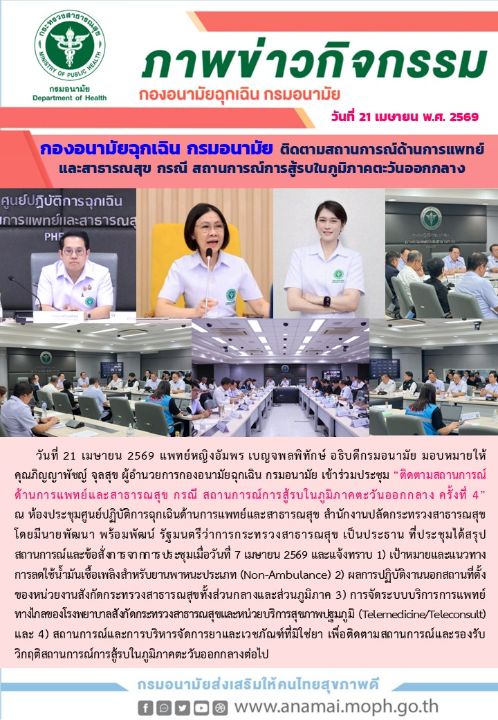 องอนามัยฉุกเฉิน กรมอนามัย ติดตามสถานการณ์ด้านการแพทย์และสาธารณสุข กรณี สถานการณ์การสู้รบในภูมิภาคตะวันออกกลาง