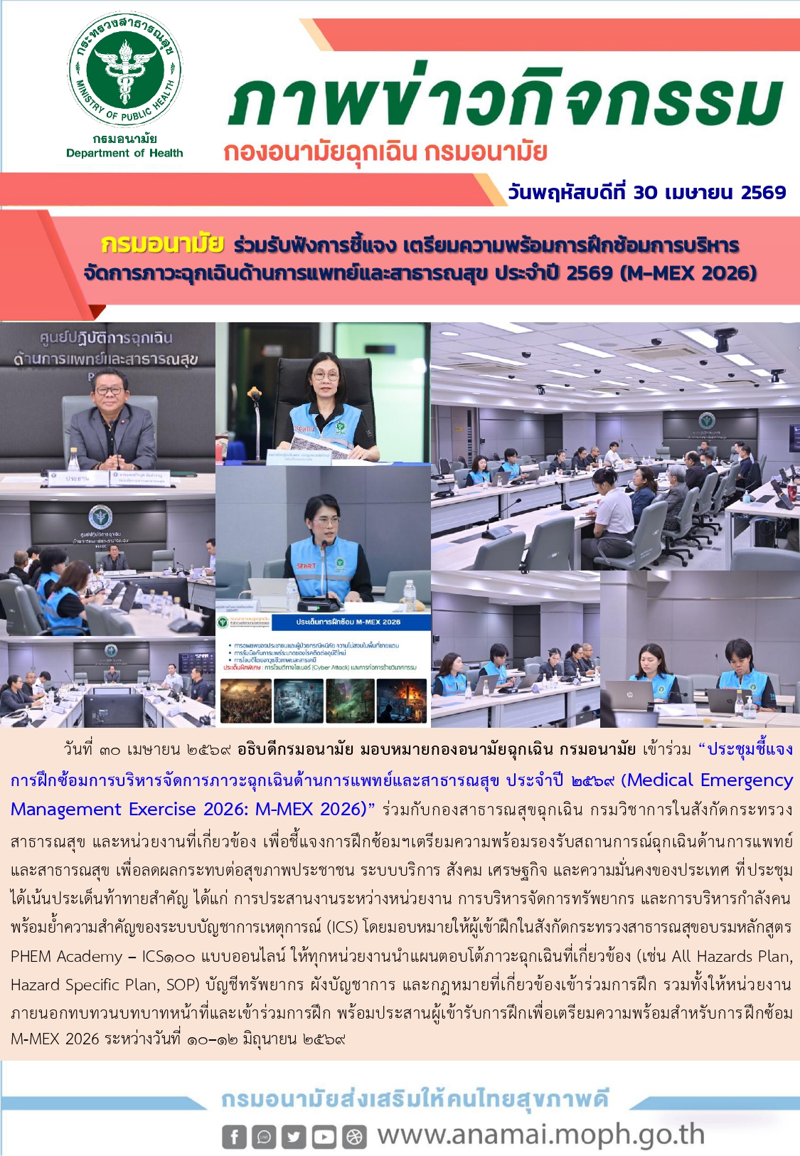 รมอนามัย ร่วมรับฟังการชี้แจงเตรียมความพร้อมการฝึกซ้อมการบริหาร จัดการภาวะฉุกเฉินด้านการแพทย์และสาธารณสุข ประจำปี 2569 (M-MEX 2026)