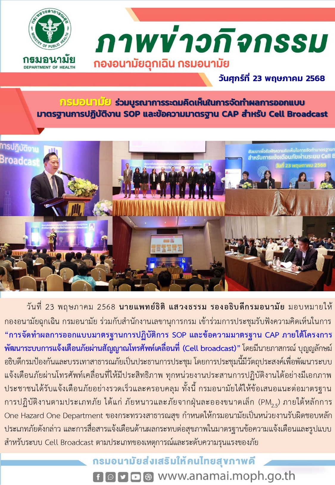 รมอนามัย ร่วมบูรณาการระดมคิดเห็นในการจัดทำผลการออกแบบมาตรฐานการปฏิบัติงาน SOP และข้อความมาตรฐาน CAP สำหรับ Cell Broadcast