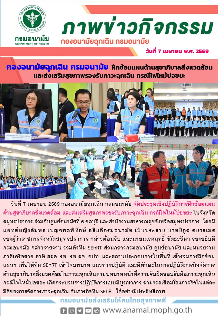 องอนามัยฉุกเฉิน กรมอนามัย ฝึกซ้อมแผนด้านสุขาภิบาลสิ่งแวดล้อมและส่งเสริมสุขภาพรองรับภาวะฉุกเฉิน กรณีไฟไหม้บ่อขยะ